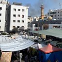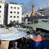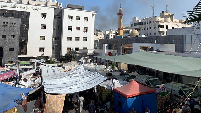 ( Image: Al Shifa hospital with smoke in the background Credit : Reuters )
