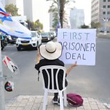 (Photo: A person calls for a deal to release people kidnapped by Hamas, near the The Kirya military base in Tel Aviv, Israel, 24 October 2023 Credit: ABIR SULTAN/EPA-EFE/REX/Shutterstock)