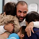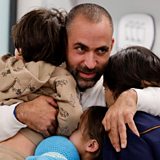 (Picture: Avihai Brodutch hugs his children Oria Brodutch, 4, and Ofri Brodutch, 10, and wife Hagar Brodutch after being reunited with them in Israel on November 26. Credit: REUTERS/3rd Party)