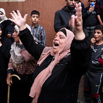 Photo shows people reacting following Israeli strikes in Khan Younis in the southern Gaza Strip on 5 December 2023. Credit: Ibraheem Abu Mustafa/Reuters)