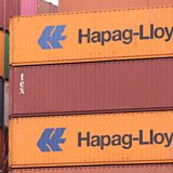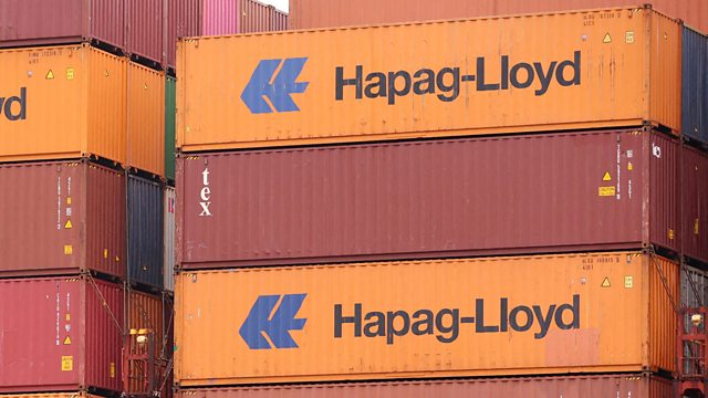(Fiile photo showing Hapag-Lloyd containers in Hamburg, Germany on 31 March 2023. Credit: Phil Noble/Reuters)