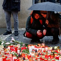 (Picture: People react at a memorial during a vigil following a shooting at one of Charles University's buildings in Prague. Credit: Reuters)