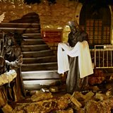 (Photo: Christmas installation of a grotto with figures standing amid rubble displayed on Manger Square in Bethlehem. Credit: REUTERS/Clodagh Kilcoyne)