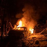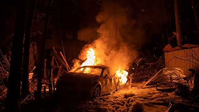 (Picture: A view of a burning car following a Russian missile strike on a residential building in downtown Kharkiv. Credit: YAKIV LIASHENKO/EPA-EFE/REX/Shutterstock)