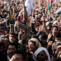 Thousands of Yemenis take to streets in the capital hours after the attacks.