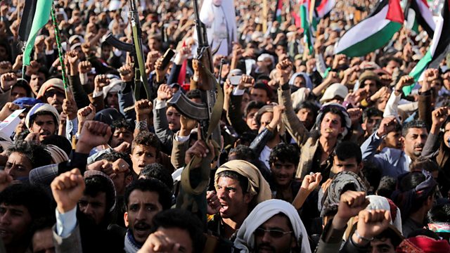 (Image: Supporters of the Houthi movement rally to denounce air strikes launched by the U.S. and Britain on Houthi targets in Sanaa, Yemen, on 12 January 2024. Credit: Reuters/Khaled Abdullah)