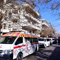 (Photo: Ambulances are seen at the site of residential building that was targeted in an alleged Israeli strike in Mezzah neighborhood, Damascus, Syria, 20 January 2024. Credit: EPA)