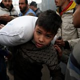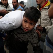(Picture: A Palestinian boy carries a bag of flour distributed by the United Nations Relief and Works Agency. Credit: Reuters)