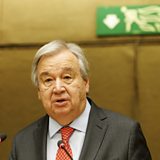 (Photo: UN Secretary-General Antonio Guterres delivers his statement at the European headquarters of the United Nations in Geneva. Credit: SALVATORE DI NOLFI/EPA-EFE/REX/Shutterstock)