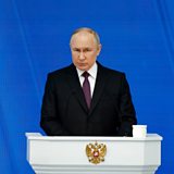 (IMAGE: Russian President Vladimir Putin delivers his annual address to the Federal Assembly, in Moscow, Russia, February 29, 2024 / CREDIT: REUTERS/Evgenia Novozhenina)
