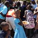 (Photo: People fleeing violence receive food outside a Haitian National Police station, following a shootout between rival gangs, in Port-au-Prince. February 12, 2024. Reuters/Ralph Tedy Erol)