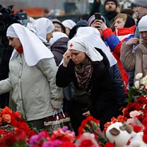 (Photo: People lay flowers at a makeshift memorial to the victims of a shooting attack in Moscow. Credit: Reuters/Maxim Shemetov)