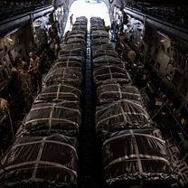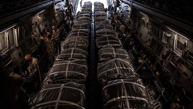 Feeding Gaza is now a complex, risky, multi-national operation. Dropping aid into Gaza from the sky is fast becoming a last resort to get food to starving people. The BBC's Lucy Williamson gains access to the US military's aid drop into Gaza.