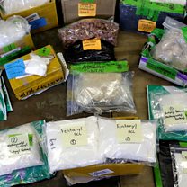 (Photo: Plastic bags of Fentanyl are displayed on a table at the U.S. Customs and Border Protection area at the International Mail Facility at O'Hare International Airport in Chicago, Illinois, U.S. November 29, 2017. Credit: Joshua Lott/File Photo/Reuters)
