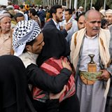 (Photo: A freed prisoner embraces a woman after arriving at Sanaa Airport on an International Committee of the Red Cross (ICRC)-chartered plane, amid a prisoner swap between two sides in the Yemen conflict, in Sanaa, Yemen April 14, 2023. Credit: Khaled Abdullah/Reuters)