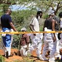 (Photo: Kenyan officers investigating shallow graves in Shakahola forest. Credit: Rex Shutterstock).