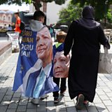 (Photo: People walk while draped in banners featuring Turkish President Tayyip Erdogan, after he was declared the winner in the second round of the presidential election, in Istanbul, Turkey, May 29, 2023. Credit: Hannah McKay/Reuters)