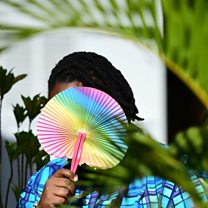 (Photo: Ashley Karungi 33, a member of the lesbian, gay, bisexual, transgender, intersex and queer (LGBTQ) community and a single mother of two poses for a picture with rainbow colours at the offices of Rella Women's Empowerment Program, for LGBTQ rights advocacy, after a Reuters interview in Kulambiro suburb of Kampala, Uganda April 4, 2023. Credit: Abubaker Lubow/Reuters)