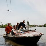 (Photo: Volunteers evacuate local residents from a flooded area after the Nova Kakhovka dam breached, amid Russia's attack on Ukraine, in Kherson, Ukraine June 8, 2023. Credit: Alina Smutko/Reuters)