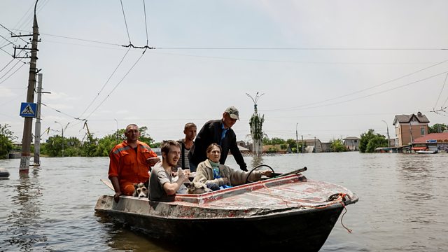 At least one person has been killed in Russian shelling in the flooded Ukrainian city of Kherson. The region has been inundated by water after a major dam was destroyed on Tuesday. We hear from a resident and from our correspondent in the region.