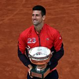 (Photo: Novak Djokovic of Serbia poses with the Coupe des Mousquetaires after winning against Casper Ruud of Norway in their Men's final match during the French Open Grand Slam tennis tournament at Roland Garros in Paris, France, 11 June 2023Credit: by MOHAMMED BADRA/EPA-EFE/REX/Shutterstock)