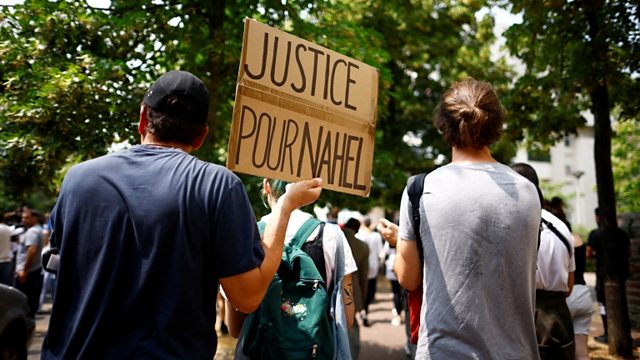 At least 40,000 police officers are being deployed across France to deal with protests triggered by the fatal police shooting of a 17-year-old driver. The teenager, named as Nahel M, was shot at point-blank range as he refused a traffic stop and drove away. We'll speak to young people across France to hear about their experiences with police.
