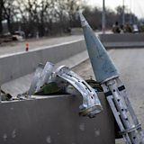 (Photo: The casing of a Russian cluster bomb rocket seen in the city of Mykolaiv, Ukraine. Credit: Getty Images/Scott Peterson)