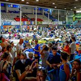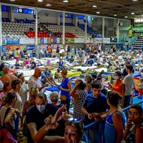 (Photo: Tourists are sheltered in a stadium after being evacuated following a wildfire on the island of Rhodes, Greece, July 23, 2023. Argiris Mantikos/Eurokinissi via REUTERS)