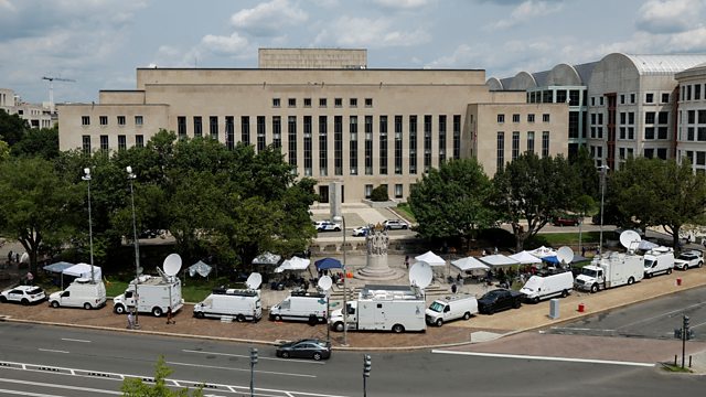 Donald Trump is due to appear in a federal court in Washington for allegedly plotting to overturn the twenty-twenty presidential election. He faces four counts, including conspiracy to defraud the United States. We speak to our correspondent outside the court.