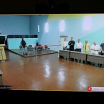 (Photo: Russian opposition politician Alexei Navalny, his lawyers Olga Mikhailova and Vadim Kobzev and other participants appear on a screen via video link during an external hearing of the Moscow City Court in the criminal case against Navalny on numerous charges, including the creation of an extremist organization, at the IK-6 penal colony in Melekhovo in the Vladimir region, Russia, August 4, 2023. Credit: Evgenia Novozhenina/Reuters)