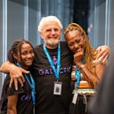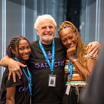 (Photo: (Photo: 07.08.2023: (l-r) Anastatia (Ana) Mayers, Jon Goodwin and Keisha Schahaff, three private passengers who are set to board VSS Unity for a 90-minute trip into space on August 10, 2023. "Galactic 02" is Virgin Galactic's first private astronaut mission. Credit: Virgin Galactic)