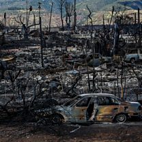 (Photo: Lahaina, Maui, Monday, August 14, 2023 - A view of destruction after a fierce wildfire destroyed the town. Credit: Robert Gauthier/Los Angeles Times via Getty Images)