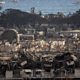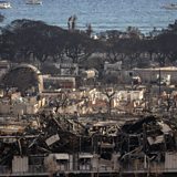 (Photo: Charred remains of a burned neighbourhood is seen in the aftermath of a wildfire, in Lahaina, western Maui, Hawaii on August 14, 2023. Credit: Photo by Yuki IWAMURA / AFP via Getty Images)