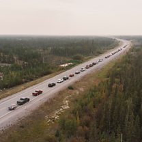 (Photo: Yellowknife residents leave the city on Highway 3, the only highway in or out of the community, after an evacuation order was given due to the proximity of a wildfire in Yellowknife, Northwest Territories, Canada August 16, 2023. Credi: Pat Kane/Reuters)
