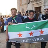(Photo: Syrian protesters hold a flag with Arabic reading 'freedom', during a protest in solidarity with the anti-government movement in As-Suwayda.