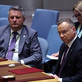 (Photo: Poland's President Andrzej Duda sits next to Ukraine’s Ambassador to the United Nations Sergіy Kyslytsya during a ministerial level meeting of the U.N. Security Council on the crisis in Ukraine at U.N. headquarters in New York. Credit: Mike Segar/Reuters)