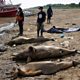 (Photo: Researchers from the Mamiraua Institute for Sustainable Development retrieve a dead dolphin from Tefe lake, which flows into the Solimoes river, that has been affected by the high temperatures and drought in Tefe, Amazonas state, Brazil, October 2, 2023. Credit: Bruno Kelly/Reuters)
