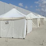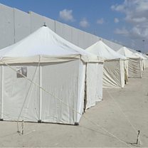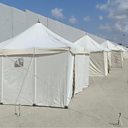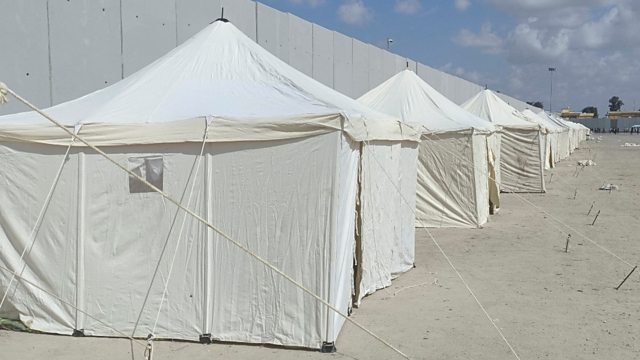(Photo: A general view of the volunteers' camp with humanitarian aid from Egyptian NGOs for Palestinians, in front of the Rafah crossing from the Egyptian side, while trucks carrying humanitarian aid for Palestinians await for it to open to enter Gaza. Credit: Stringer/Reuters)
