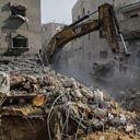 (Photo: Palestinians search among the rubble of a destroyed house following an airstrike in Gaza, 24 October 2023. Credit: Mohammed Saber/EPA-EFE/REX/Shutterstock)