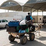 (Photo: A Palestinian on a donkey-drawn cart waits at the Rafah border crossing between the Gaza Strip and Egypt, in Gaza, 01 November 2023. Credit: Photo by HAITHAM IMAD/EPA-EFE/REX/Shutterstock)