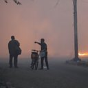 (Photo: A man gestures as he walks with his bike during Israel's ground offensive, on the edges of Beach refugee camp, in Gaza City, November 8, 2023. Credit: Mohammed Al-Masri/Reuters)