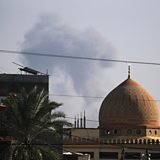 Smoke rises following Israeli air strikes in Al Nusairat refugee camp, southern Gaza Strip, 18 December 2023. )