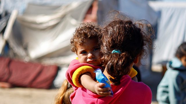 Thousands of displaced Palestinians are setting up makeshift shelters as they flee the latest advances by Israeli forces in Gaza. Conditions in the south of the territory are reported to be dire as Israel broadens its offensive. We hear from residents in the territory and speak to our correspondent in Jerusalem.