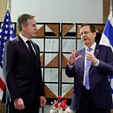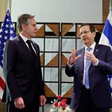 (Photo: U.S. Secretary of State Antony Blinken meets Israel's President Isaac Herzog, during his week-long trip aimed at calming tensions across the Middle East, at David Kempinski Hotel, in Tel Aviv, Israel, January 9, 2024. Credit: Evelyn Hockstein/Pool/Reuters)
