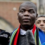 (Photo: Ronald Lamola, Minister of Justice of South Africa, speaks to the press before the International Court of Justice (ICJ) after the first day of the hearing of the genocide case against Israel, brought by South Africa, in The Hauge, The Netherlands, 11 January 2024 Credit: