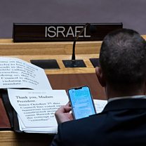 (Photo: Israel's Ambassador to the United Nations Gilad Erdan gets his speech ready during a United Nations Security Council vote on a US-proposed draft resolution, which calls for a temporary ceasefire in Gaza, at United Nations headquarters in New York, New York, USA, 20 February 2024. Credit: EDUARDO MUNOZ/EPA-EFE/REX/Shutterstock)