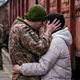 (Photo: Ukrainian serviceman says goodbye to his wife who was visiting him during a short break from his frontline duty, at the train station in Kramatorsk, Ukraine, 14 February, 2024. Credit: Inna Varenytsia/Reuters)