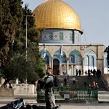 (IMAGE: A member of the Israeli security forces stands guard at the Al Aqsa Mosque CREDIT: REUTERS/Ammar Awad)
