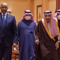 (IMAGE: Saudi King Salman bin Abdulaziz receives Sudan's General al-Burhan in Riyadh, Saudi Arabia March 21, 2022.CREDIT: Bandar Algaloud/Courtesy of Saudi Royal Court/Handout via REUTERS)