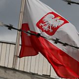 (Picture: Polish national flag at the Polish embassy in Moscow. Credit: Yuri Kochetkov)